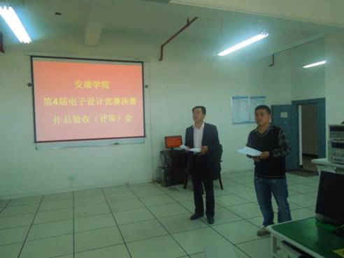 我校第四届大学生电子设计竞赛决赛于2014年4月23日在逸夫科技楼A601举行,本次比赛由教务处和电子与信息工程系联合举办,历经电子系统设计理论竞赛(预赛)和电子系统设计制作竞赛(决赛)2个阶段,预赛已于2013年12月31日在江北校区1301教室举行,共有69名同学参加。在电子竞赛准备期间,电信系对学生开放实验室,积极宣传电子竞赛相关知识和信息,精心组织电子竞赛每个阶段的活动;在学生训练时,指导老师耐心指导,最终有13支队伍参加作品演示与答辩,教务处、电信系领导及电子教研室部分教师参加了决赛作品验收答辩,最后评出一等奖1组,二等奖2组,三等奖4组,优秀参赛奖6组。