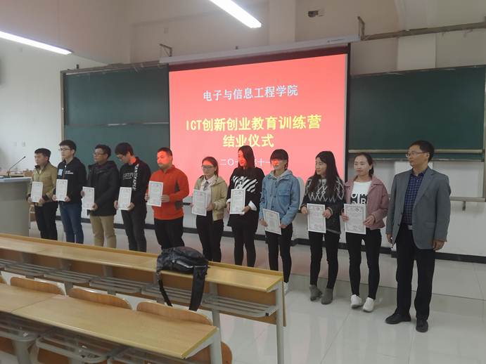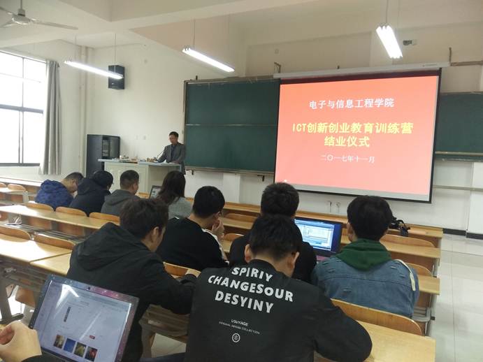 11月10日欧冠投注官网入口在1301教室举办了ICT创新创业教育训练营结业仪式。仪式由创新创业教育改革试点学院负责人陈守满教授主持。