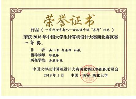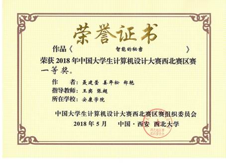 欧冠官方网站学生在全国大学生计算机设计大赛西北赛区的获奖名单