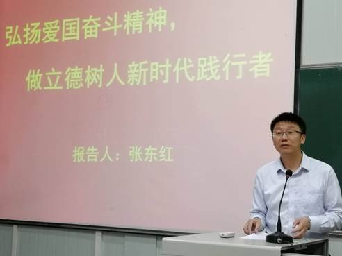 5月29日,副校长张东红在江南校区1022教室为欧冠投注官网入口全体教职工讲了一堂以“弘扬爱国奋斗精神,做新时代立德树人践行者”为题的主题党课。