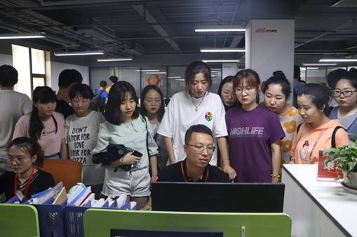 参观完百度和阿里巴巴的创新中心之后,同学们来到了本次见习的最后一站,北京中公教育科技有限公司陕西分公司,中公教育是目前国内唯一一家A股上市的教育企业。为了让同学们更加深入的了解到本专业的对口工作方向,中公教育将本次参与见习的同学们按照专业分为三组,电商专业学生对接在图书电商部、数媒专业对接在网页设计部、计算机专业对接在JAVA项目组进行见习。