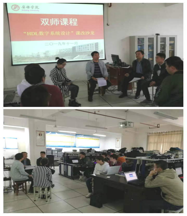 为了进一步推进欧冠投注官网入口产教融合、协同育人人才培养模式的构建,不断提高应用型人才培养质量。2019年11月8日,欧冠投注官网入口电子工程系在江北校区逸夫科技楼A401实验室,围绕学校首批立项的“双师课程”《HDL数字系统设计》建设成效,开展了一次课改沙龙活动。欧冠投注官网入口教学副院长王庆春、双师课程合作企业授课老师贺磊工程师、电子工程系相关教师以及电子信息工程专业2017级学生参加了本次课改沙龙活动。