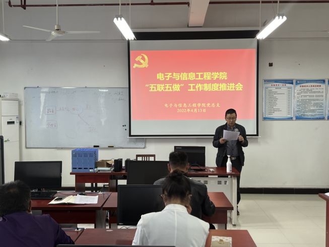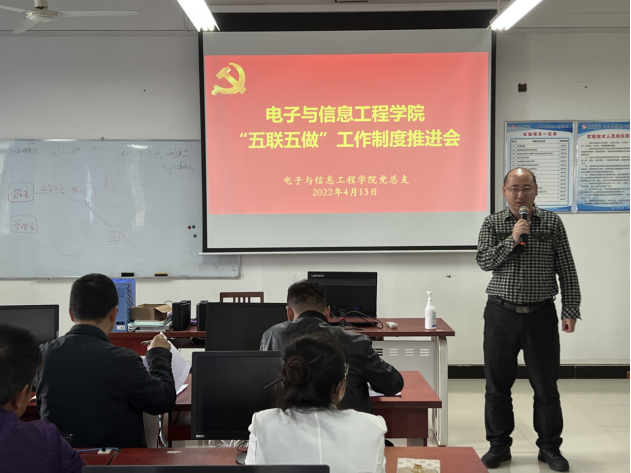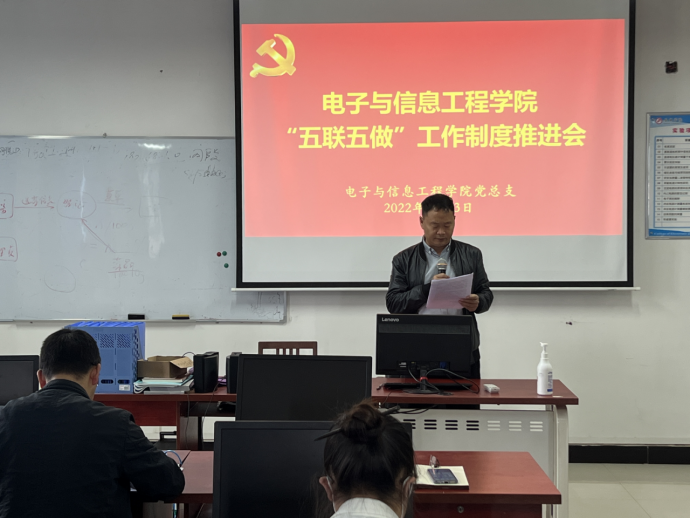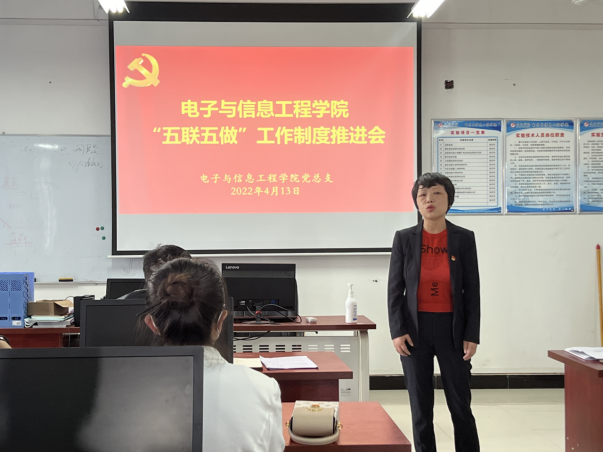 为积极引导基层党组织、党员干部、师生党员等融入“三全”育人工作,建立党建引领、结对共建、师生同行的基层党建工作育人新机制,增强党员干部责任意识、问题意识和服务意识,4月13日,欧冠投注官网入口召开“五联五做”工作制度推进会。欧冠投注官网入口全体教师及学生代表参加会议。本次会议由欧冠投注官网入口党总支书记于咏梅主持。