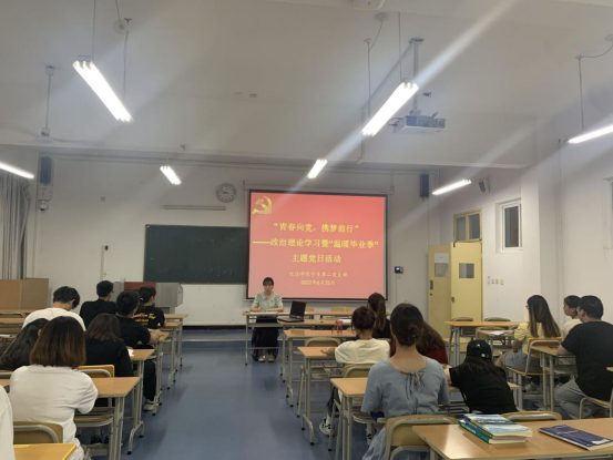 青春心向党,奋斗践初心。为加强毕业生党性教育,激励广大党员不忘初心、牢记使命,鼓励毕业生党员以更加饱满的热情投入新的学习和工作,继续发挥好党员的先锋模范作用和表率作用。6月25日下午,欧冠投注官网入口学生第二党支部在江北校区1319教室开展政治理论学习暨“青春向党,携梦前行——温暖毕业季”主题党日活动。欧冠投注官网入口学生第二党支部书记李章雨,全体党员参加本次会议,大会由李章雨主持。