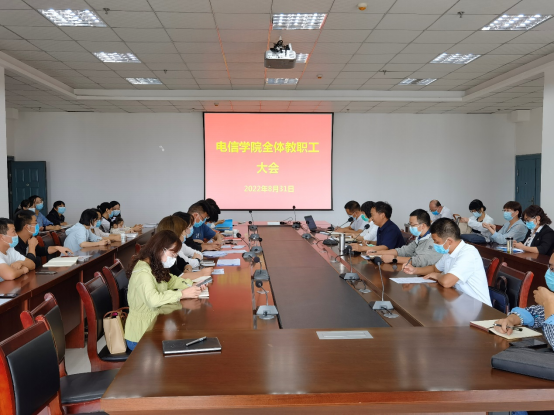 2022年8月31日下午,欧冠官方网站在逸夫科技楼九楼会议室召开全院教职工大会,欧冠投注官网入口领导班子成员及全体教职工参加,会议由院长陈守满主持。