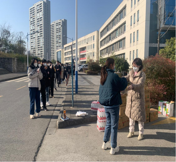 冬至当天,阳光明媚,在欧冠官方网站江北校区的教学楼前,成英丽勉励考研的同学们要以积极乐观的心态面对疫情,在最后关头要调整好身体和心理状态,同时叮嘱他们要劳逸结合,尤其是要注意科学防护、顺利应考。慰问中,学院为在校的112名同学赠送了“考研上岸大礼包”,无论是“薯”你最牛的薯愿和牛奶、好运“旺旺”的仙贝、“顺风顺水”的纯净水,还是守护健康安全的口罩,都满载着学院诚挚的祝福。同学们对学院的亲切探望和慰问,倍受感动、深受鼓舞,并表示在即将到来的研究生考试中会更加自信自强、勇毅前行,用最好的状态迎接考试,用最好的成绩回报学校。