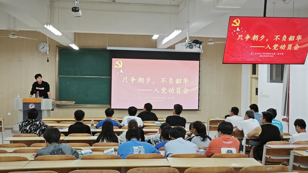 学生第二党支部中共预备党员2022级电子信息工程1班的桑俊毅详细讲解了入党申请书的相关注意事项与党员发展流程,表示加入中国共产党的大门始终为那些有理想、有准备、有抱负,立志为共产主义奋斗终生的有志青年敞开,鼓励同学们积极向党组织靠拢,主动提交入党申请书,积极向上,端正政治思想,争做时代新人。