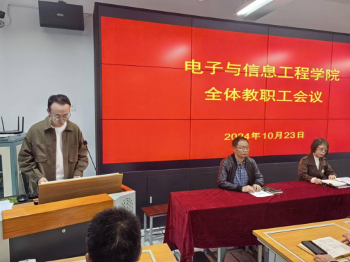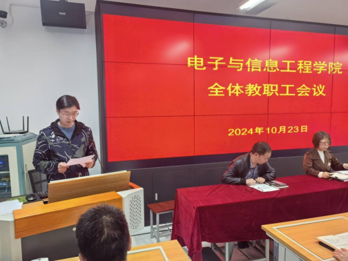 10月23日下午,欧冠投注官网入口在逸夫科技楼B602室召开教职工大会,宣布学校党委关于科级干部任命的决定。学院领导班子与全体教职工参加会议,会议由党总支书记于咏梅主持。
