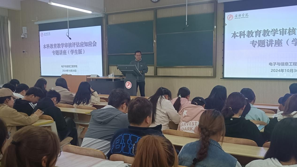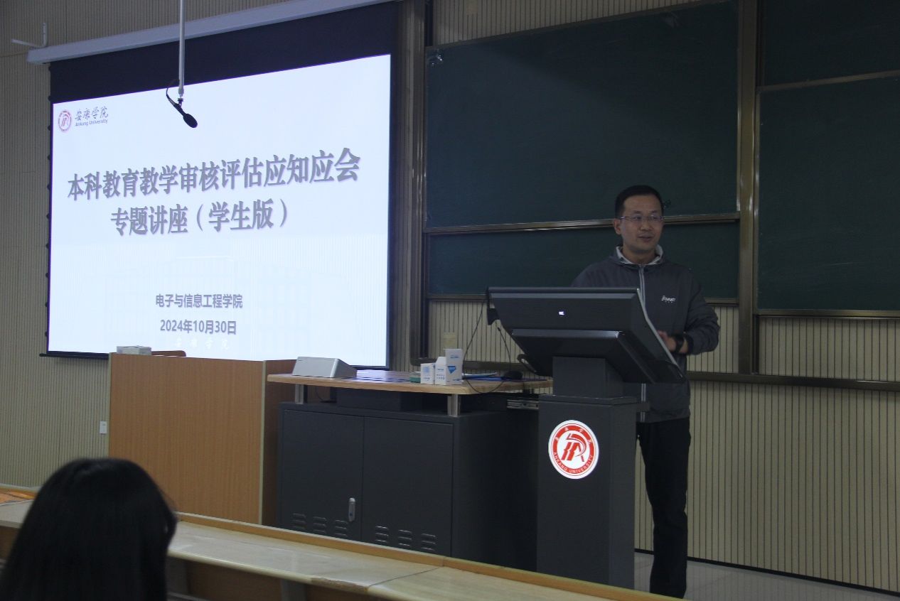 为全面落实本科教育教学审核评估工作要求,营造浓厚的迎评促建氛围,进一步强化主人翁意识和责任担当。2024年10月30日,欧冠官方网站副院长宋权华做了《欧冠官方网站本科教育教学审核评估应知应会手册(学生版)》宣讲暨欧冠官方网站2024级新生入学教育,欧冠官方网站2024级全体新生参与。