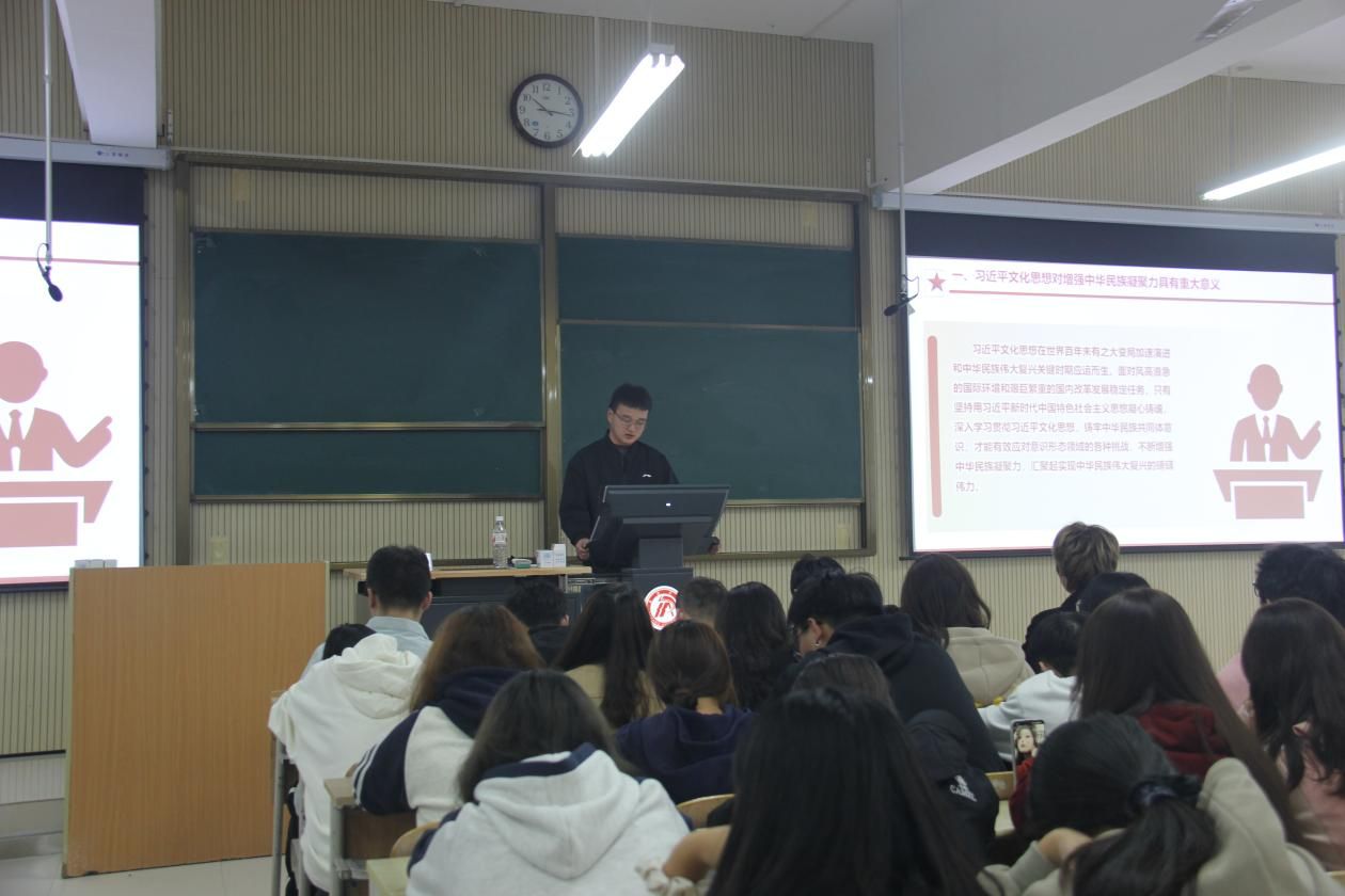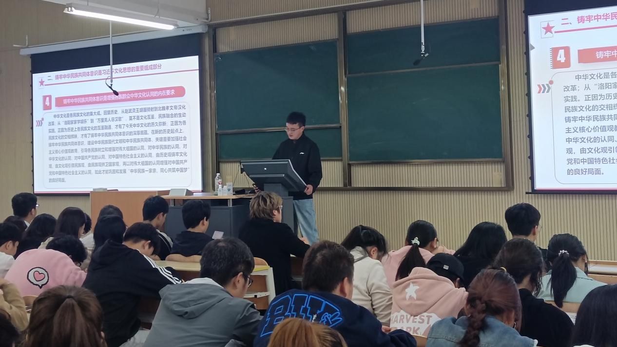 为深入学习贯彻习近平总书记关于加强和改进民族工作的重要思想,进一步铸牢中华民族共同体意识,2024年10月30日下午,欧冠投注官网入口学生第二党支部书记贾金兵在江北校区1201、1203教室讲授主题为“铸牢中华民族共同体意识 深入学习习近平文化思想”的入学教育暨专题党课,欧冠投注官网入口2024级全体新生参加。