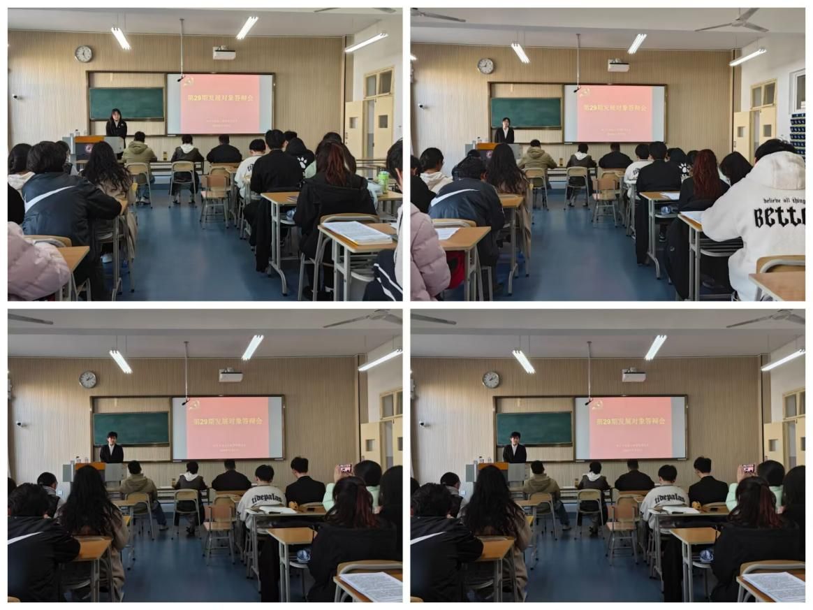 此次述职答辩旨在通过全面考察发展对象的政治素养、党性修养及综合素质,确保发展党员的高标准、严要求,切实把牢发展党员“入口关”。答辩采用现场抽签、答辩准备、自我介绍、老师提问、现场答辩等环节。在自我介绍环节,学生发展党员对象就个人基本情况、入党动机、个人思想发展变化过程、所获荣誉奖励等方面进行简要介绍。在老师提问环节,各位老师就关于党的性质、宗旨、指导思想、加入党组织条件、中国共产党党员条件、二十大、二十届三中全会精神、社会主义核心价值观等内容和学生如何提高角色意识、履行自身职责,正确处理好学习和工作的关系等方面展开提问,进一步考察了学生的思想政治素质、对党的认识、对党的基本理论知识和时事热点的掌握程度,考察了学生的工作能力和工作水平。