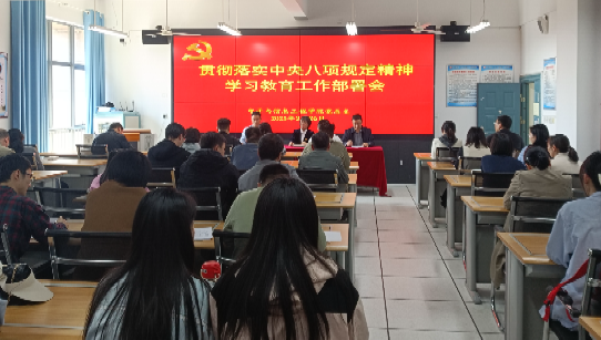 3月25日,欧冠官方网站召开党的建设工作会议,专题研究部署深入贯彻中央八项规定精神学习教育工作。学院班子成员、党总支委员、科级干部、各党支部书记等参加会议。3月26日,学院召开深入贯彻中央八项规定精神学习教育工作部署会,全体党员参加会议。