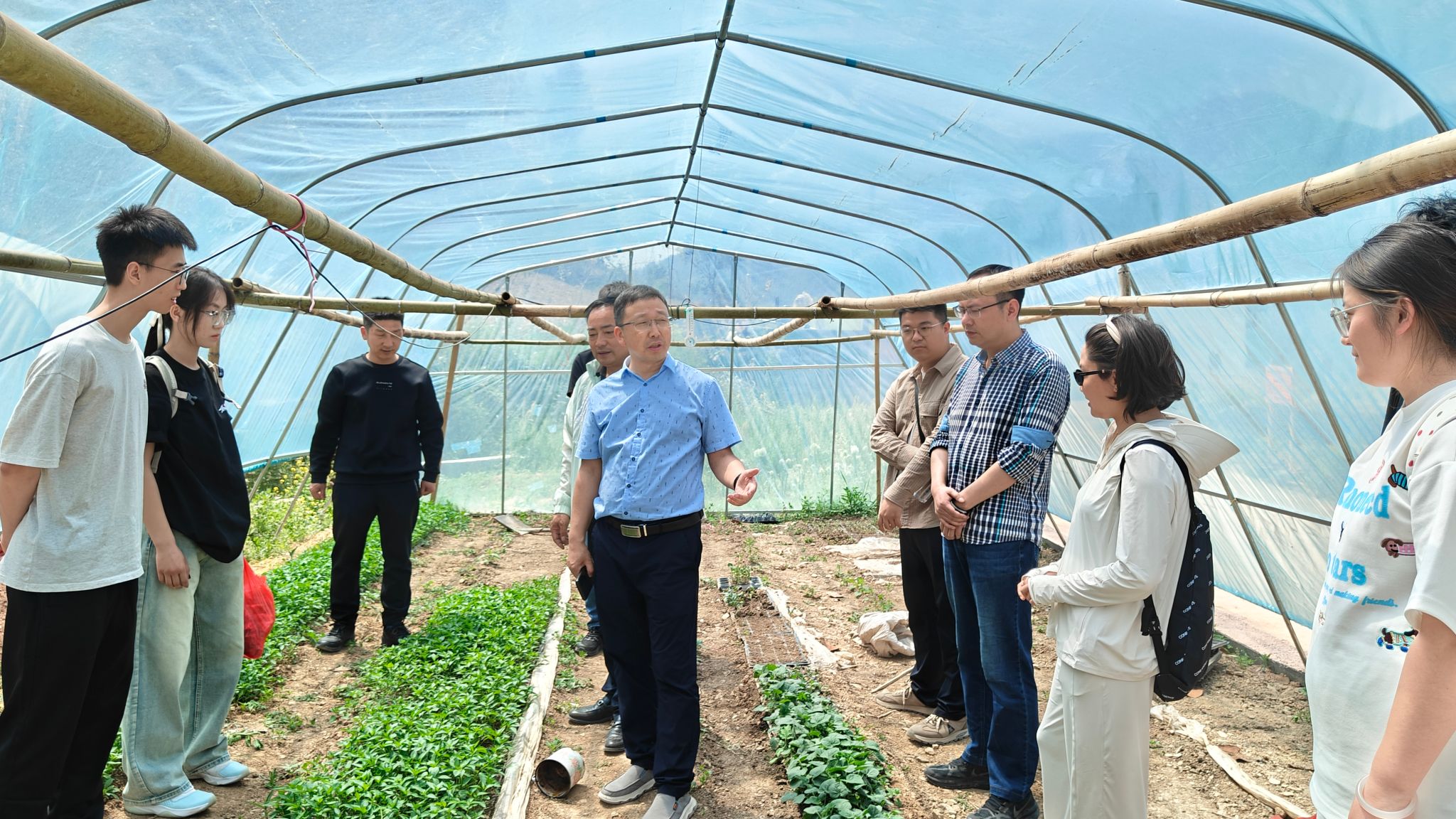 全体师生走进新喜村优质种子资源保护与开发示范园,新喜村党支部书记杨发文向大家详细介绍了园区所引进的前沿技术及其广阔的应用前景,随后亲自引领大家参观优质种源基地智能控制与管理系统。参观过程中,大家了解了现代农业土壤监测、温度检测与控制、节水灌溉系统以及一系列现代化的农业科技。