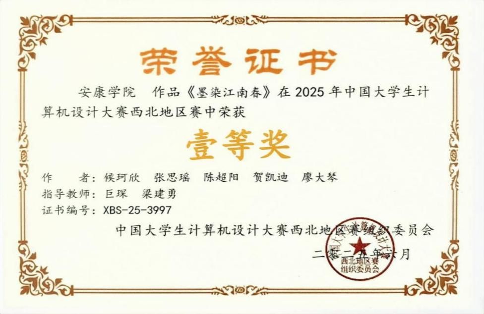 近日,2025年(第18届)中国大学生计算机设计大赛西北地区赛圆满落幕,我院学子在该比赛中喜获佳绩。全校共76个作品报名参赛,经校内初赛选拔,我院共有26个作品被推荐参加了5月在兰州信息科技学院举行的西北地区赛,参赛作品全部获奖,其中,获省级一等奖2项,省级二等奖9项,省级三等奖15项。