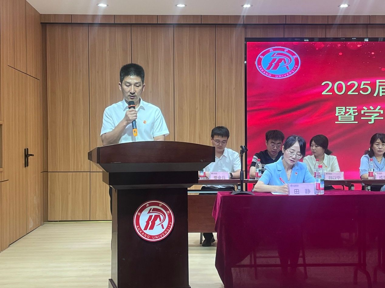 党总支副书记蔡正旺宣读《关于表彰2025届优秀毕业生的决定》,表彰品学兼优的学子。