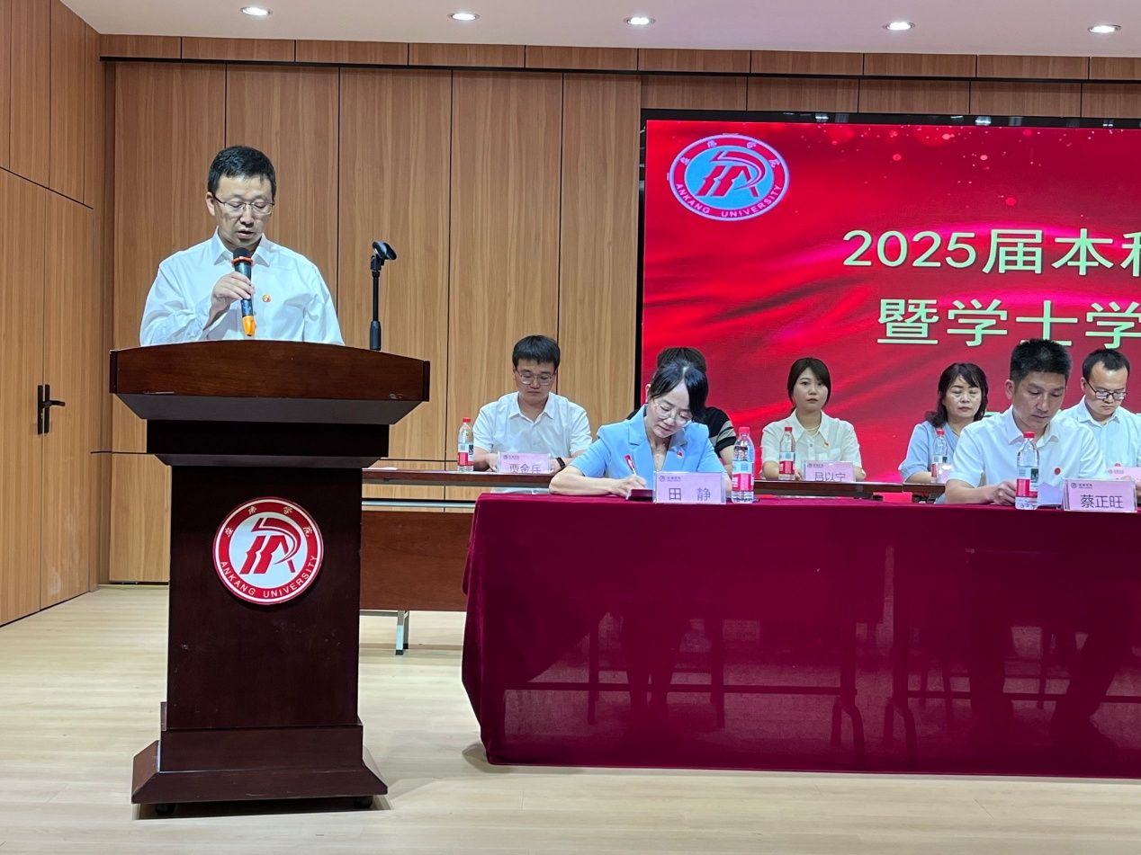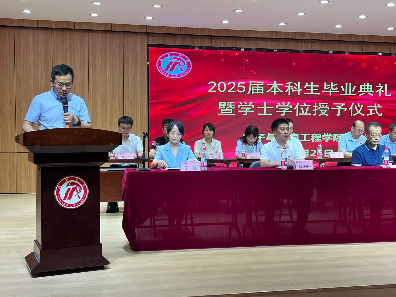 副院长宋权华宣读《关于2025届毕业生毕业情况的通报》及《关于授予常秦楠等3628名本科毕业生学士学位的决定》,宣告学业成果。