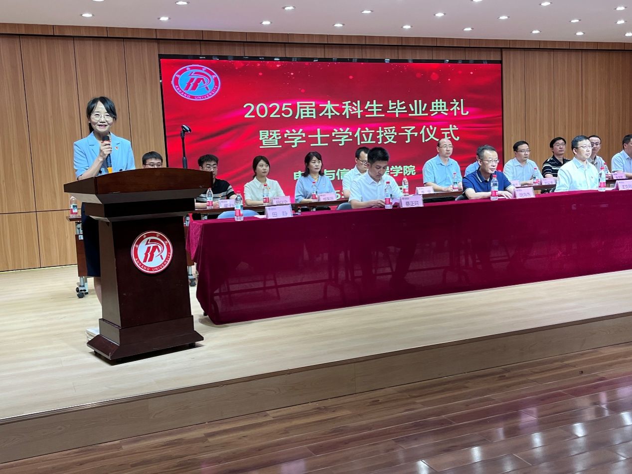 物联网工程2021级1班梁梦心作为代表毕业生发言,深情回顾四年的校园生活,向母校与恩师致以谢意,并向同窗发出倡议:锚定目标,以专业筑基前行:以扎实学识为阶梯,让每一份努力都通向理想的彼岸。勇于突破,在实践中成长蜕变:积极投身实践,,在未知中突破自我,让青春绽放更多可能。保持热忱,以坚韧直面挑战:以积极心态、坚韧意志面对挫折,坚信努力终将收获璀璨回报。