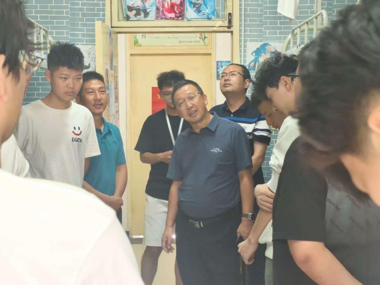 为深入了解2025级新生入学适应情况,传递学院的关怀与温暖,9月2日下午,学院领导班子带领新生辅导员走进新生寝室,与同学们“拉家常、聊近况、话学业”,现场解答他们来校后的困惑、解决实际问题,同时送上电信学院的悉心指导,为大学生活保驾护航。