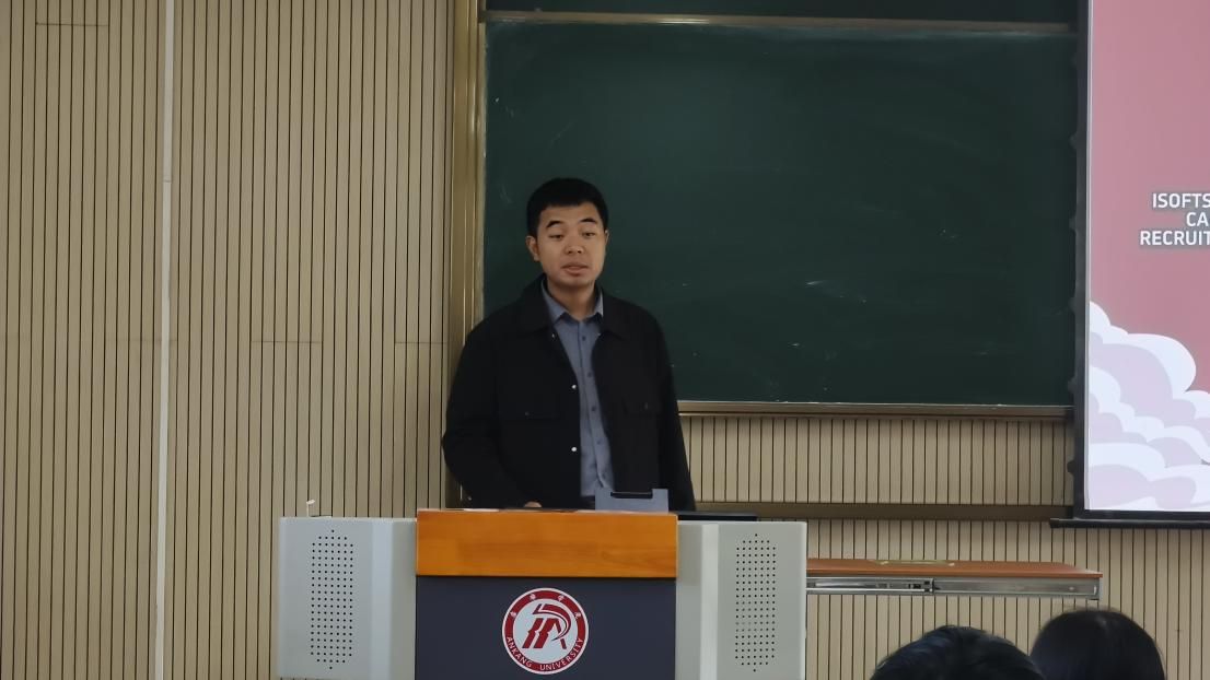 本次宣讲会由资深IT技术专家、教育创新者张展主讲。他拥有ICT(信息与通信技术)领域超10年从业经验,曾任软通动力项目总监,在多领域技术开发与人才培养方面积累了深厚经验。宣讲过程中,张展围绕春招、秋招关键时间节点展开讲解,着重强调:扎实的代码功底、清晰的编程思维是计算机类专业学生的核心竞争力,是叩响名企大门的“金钥匙”,为学子们明确了能力提升的关键方向。