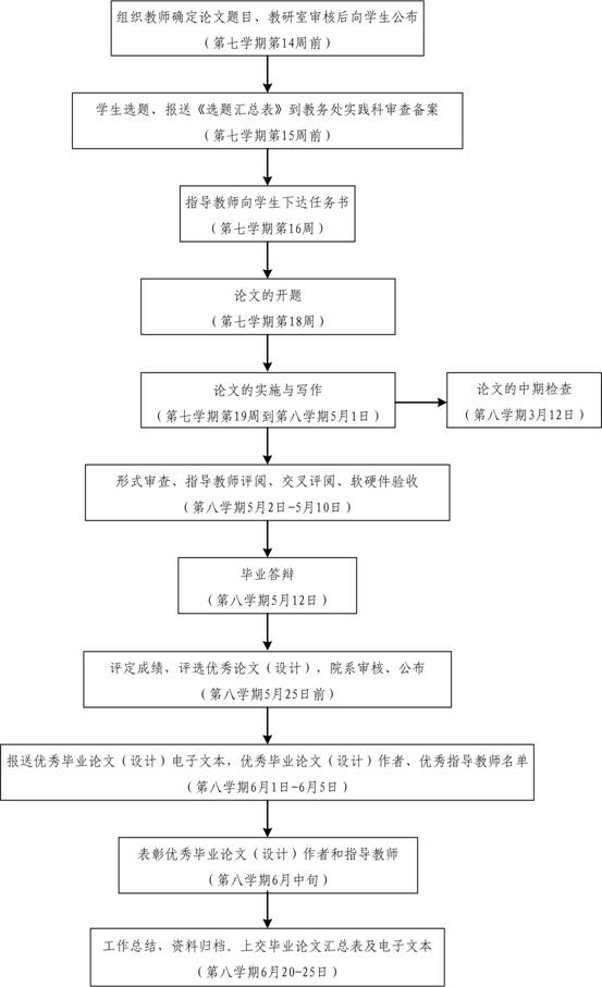 毕业论文(设计)是本科教学最重要的实践教学环节,电信系2015届本科毕业生有174人,涉及计算机科学与技术、电子信息工程和数字媒体技术三个专业。2015届毕业论文(设计)的各项工作将在2014年11月~2015年6月这一时间段内完成,为更好地开展这一极为重要的实践环节,按照《电信系本科生毕业论文工作流程》要求,现就2015届毕业设计相关工作布置如下,请各教研室仔细阅读并认真执行。