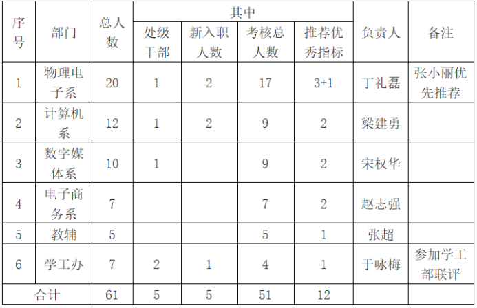 (1)系部推荐:各系部考核工作应在2022年1月4日(周二)前完成。各系部在考核工作负责人领导下,尽快召开部门述职考评会议,按照文件规定的程序和要求,及时完成考核及考核优秀推荐工作。