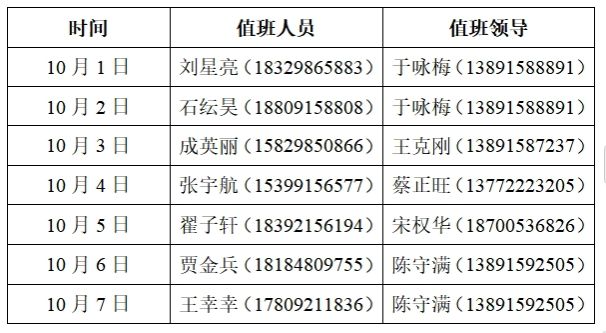 根据学校安排,欧冠官方网站2024年国庆节假期值班安排及相关工作要求如下: