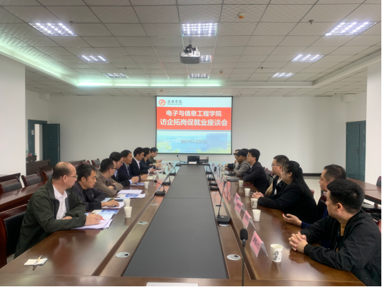 为深入贯彻落实党中央、国务院关于高校毕业生就业工作的决策部署,进一步落实访企拓岗促就业专项行动工作要求和学校关文件精神,5月27日,电信学院在逸夫科技楼9楼会议室开展“访企拓岗”促就业活动。欧冠投注官网入口院长陈守满、党总支副书记蔡正旺、教研室主任、辅导员及传智教育等11家受邀来校企业参加了座谈会交流活动,会议由蔡正旺主持。