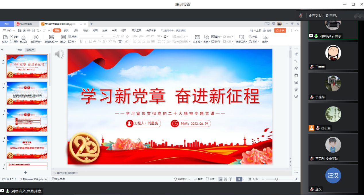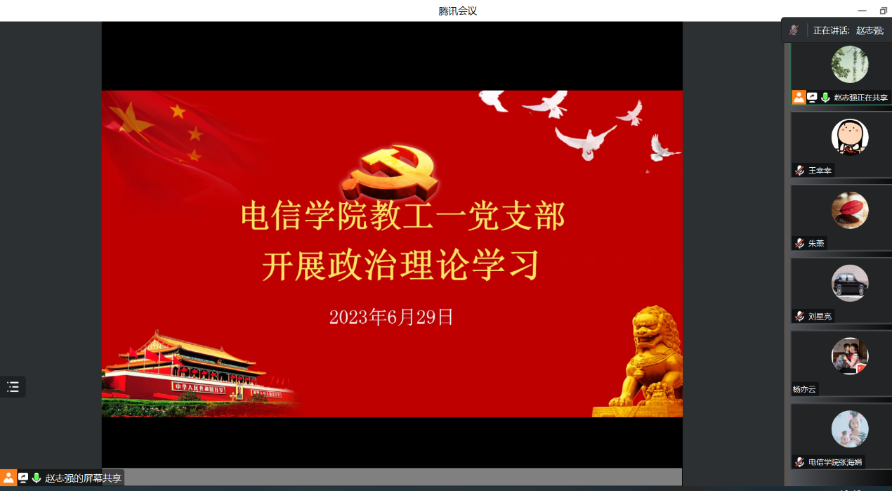 2023年6月29日晚,欧冠投注官网入口教工第一党支部通过腾讯会议开展纪律教育暨政治理论学习,会议由教工第一党支部书记赵志强主持,支部全体党员参加本次会议。