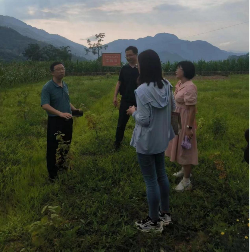 在我校驻新喜村第一书记郭建鹏的带领下,专家组来到了新喜村驻村工作队的实践田,实践田里栽种了阳光玫瑰葡萄、金丝皇菊、刺龙苞等作物。郭建鹏向专家组成员详细介绍了实践田的设立目的和现状,通过实践田对一些优质农产品的引种,为新喜村的产业发展进行实践探索,专家组的老师们下到田间地里,对实践田里的各类作物进行了仔细观察,对实践田后续进一步利用信息技术提升作物种植实验效果进行了建议。