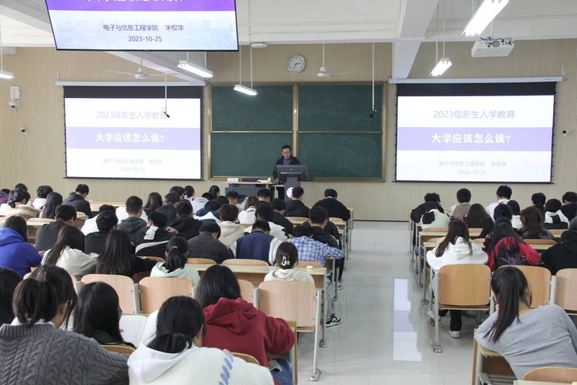 为帮助欧冠投注官网入口2023级新生更好的适应大学新生活,加强专业认知,培养良好的学习习惯,实现由中学到大学的转变。10月25日下午,欧冠官方网站副院长宋权华在江北校区1204教室讲授主题为“大学应该怎么读?”新生教育大会,欧冠投注官网入口2023级全体新生参加。