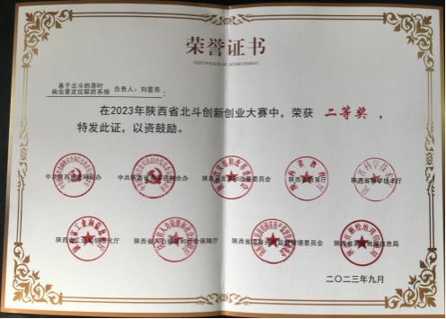 近日,2023年陕西省北斗创新创业大赛比赛结果揭晓,欧冠投注官网入口教师刘星亮的《基于北斗的茶叶病虫害定位联防系统》荣获本次大赛二等奖,学生李冠辰的《基于北斗定位的导盲小车控制系统》荣获本次大赛最具创意奖。