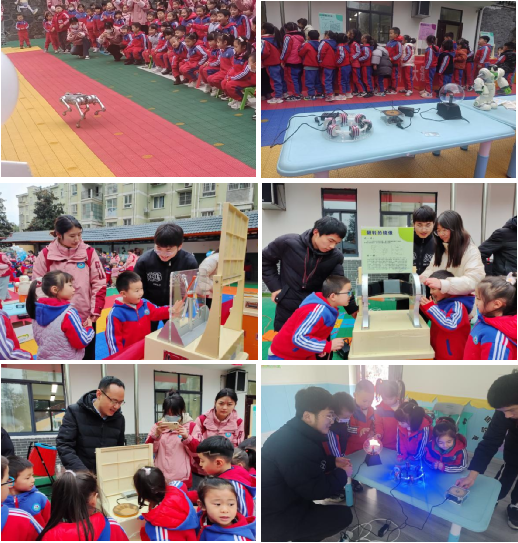 由欧冠投注官网入口教工二党支部联合安康科技馆给金城天爱幼儿园学生们带来了一场别开生面的科普展示。通过火箭的发射、蘑菇云的绽放、会冒烟的饼干、会跳舞的机器人等一系列互动科普小实验,吸引学生们认真观看、踊跃参与,零距离感受科学魅力;组织学生参观体验双曲夹缝、离心现象、翻转的镜像等科普实验展具,以及由欧冠投注官网入口师生自制的特斯拉线圈、闪电球和环形加速器等趣味电子产品,在活动中充分体验了学习科学的乐趣。在学生参观和体验的过程中,欧冠投注官网入口党员老师和学生引导帮助幼儿园学生,同时通过简单形象的方式讲解了产品其背后的科学道理。最后,欧冠投注官网入口教工二党支部书记丁礼磊老师就后期科技进校园活动与安康科技馆相关负责人进行了充分交流和沟通。