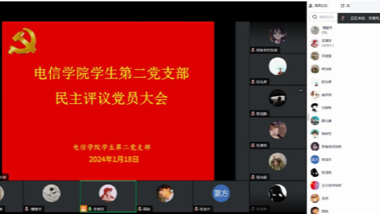 为切实增强基层党组织政治功能、组织功能严格党员教育管理,2024年1月18日上午10:00,根据《中共欧冠官方网站委员会关于召开2023年度基层党组织开展民主评议党员工作的通知》的相关要求,欧冠投注官网入口学生第二党支部开展民主评议党员工作。会议由支部书记李章雨主持,支部全体党员参加会议。