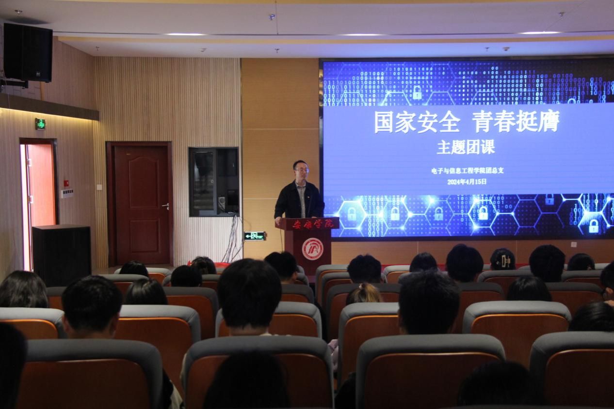 在第九个全民国家安全教育日来临之际,为深入学习习近平总书记关于总体国家安全观的重要论述,不断增强学生国家安全意识,筑牢国家安全防线,努力营造“国家安全,人人有责”的良好氛围,4月15日,欧冠官方网站团总支在江北校区图书馆报告厅开展了以“国家安全 青春挺膺”为主题的国家安全主题团课。学院团总支书记张宇航主讲,100余名在校团员青年代表参加学习。
